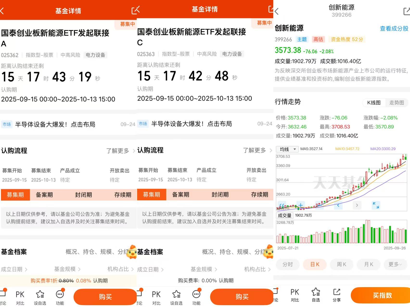 综上所述,当前新能源板块整体乃至储能等各细分赛依然处于高速成长期,再综合考虑到全球新能源转型的迫切需求、中国新能源企业在当前全球新能源产业中所处于的绝对优势地位,以及固态电池的技术潜力等多重利好因素。因此,国内新能源行业显著正处于“用电需求刺激+历史低估值”双重利好作用下,因此,对于散户投资者来说,可以直接买入国泰基金明星基金经理朱碧莹女士紧密跟踪正在于2025年9月15日至10月13日火热发售中的国泰创业板新能源ETF发起联接(A:025362;C:025363)。创业板新能源指数(399266)“近1年”阶段涨幅高达88.96%,远超沪深300指数的28.34%。
