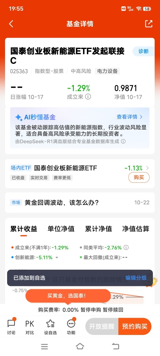 从产品特性来看,国泰创业板新能源ETF联接A的A类份额特别适合把握当前行业的长期机遇。其费率结构对长期持有者更为友好,持有超1年免赎回费的设计,契合新能源技术落地与行业整合的时间周期。对于追求长期稳健收益、看好新能源产业高质量发展的投资者,该基金既规避了个股选择风险,又能通过指数化投资分享储能爆发、技术突破与格局优化带来的复合收益,是当前市场环境下的优质配置选择。@国泰基金