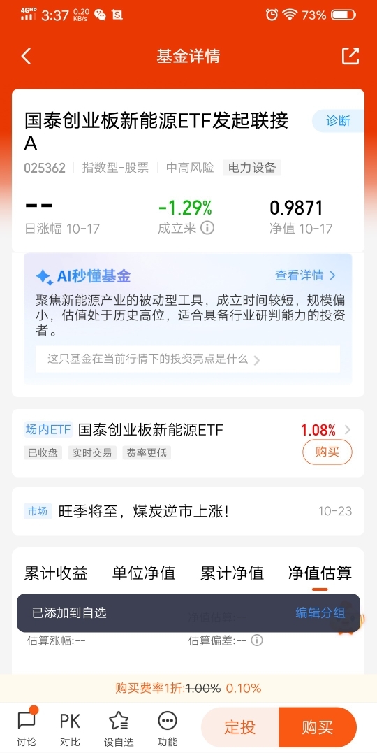 想关注新能源板块的动态,看到国泰创业板新能源ETF发起联接基,$国泰创业板新能源ETF发起联接A$$国泰创业板新能源ETF发起联接C$ 就把两只基金都加入了自选,毕竟当前新能源赛道的投资逻辑实在太清晰了。最后期待和大家一起在新能源赛道上收获长期收益!