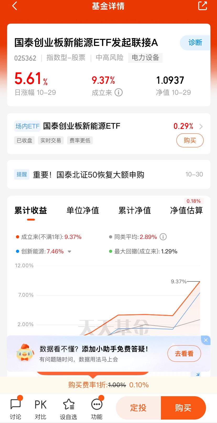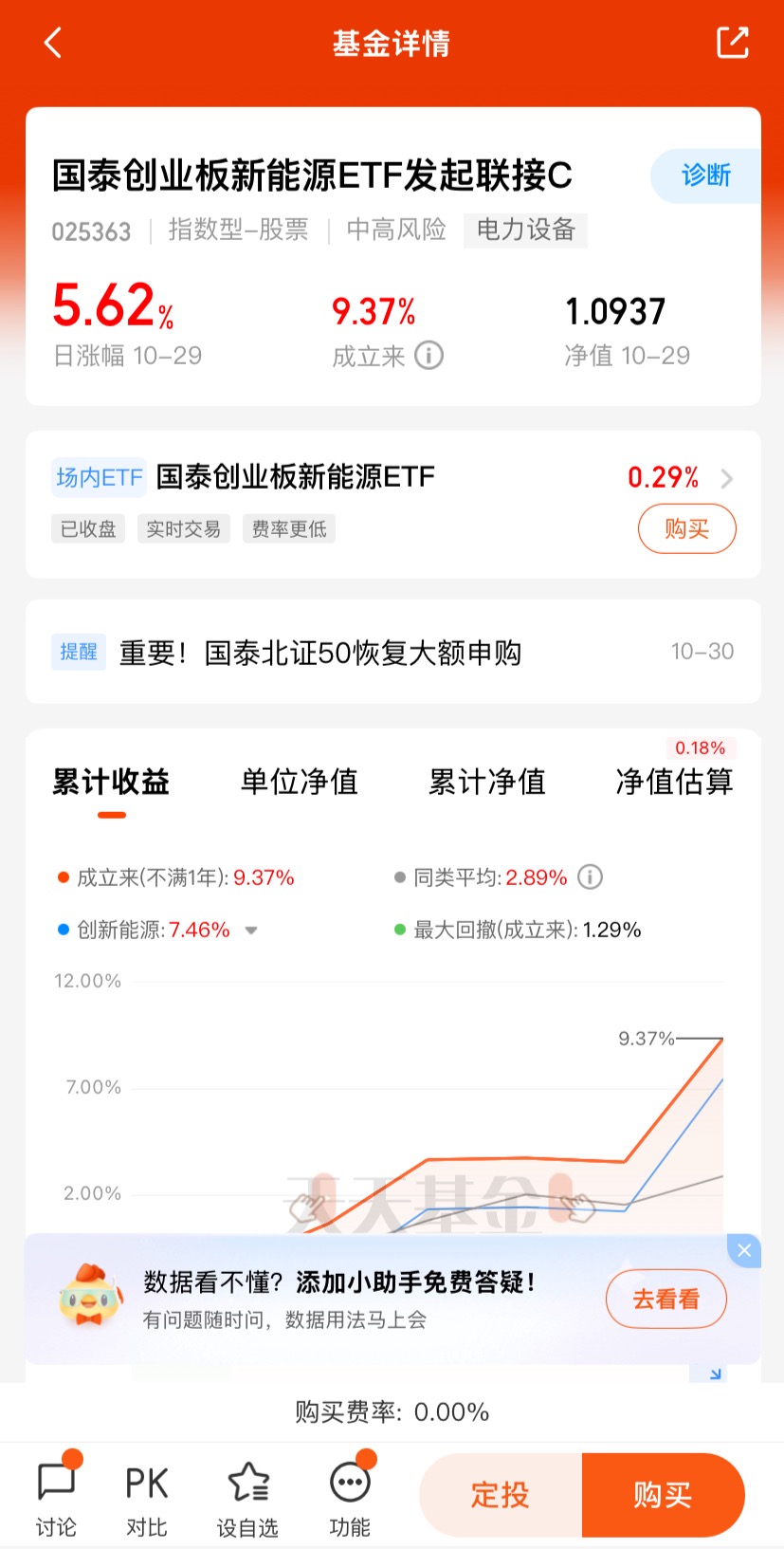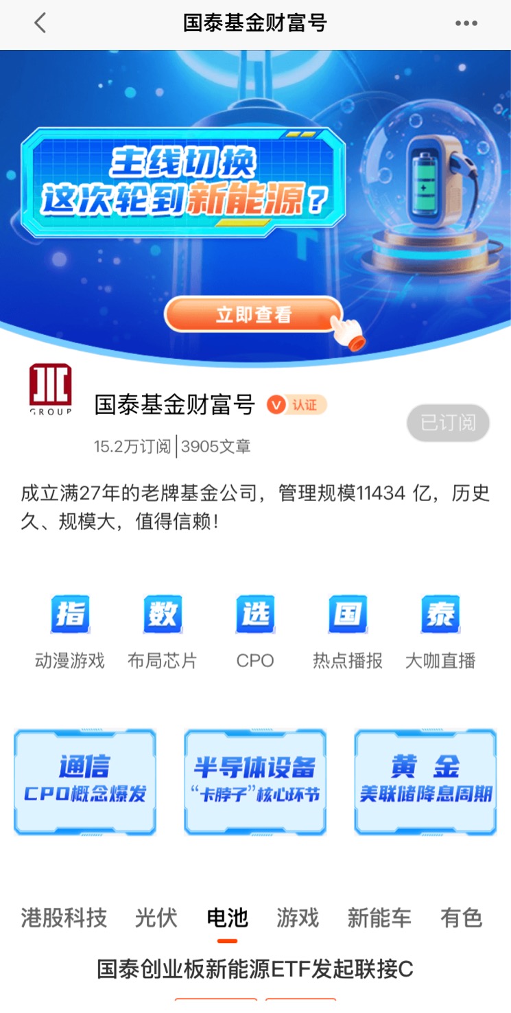 新能源行业符合全球能源转型趋势,政策支持与技术突破将持续推动增长,当前板块估值处于历史低位,美联储降息预期下全球流动性释放,可关注估值修复带来的交易性机会。国泰创业板新能源ETF发起联接基金(A类:021853/C类:025363)通过指数化投资分散风险,低成本分享行业红利,适合不同风险偏好投资者。@国泰基金