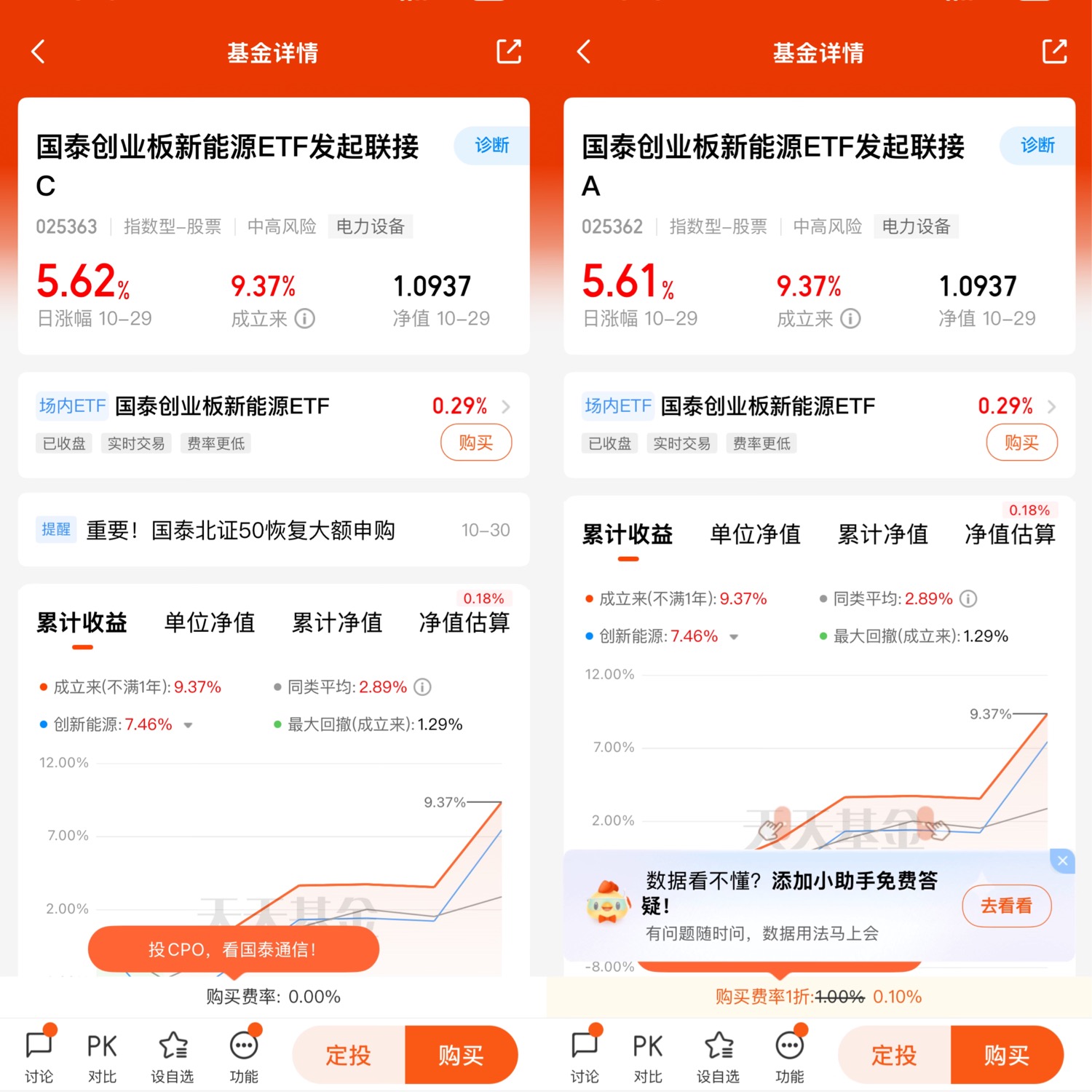 对于普通投资者而言,直接参与个股投资可能面临行业研究门槛高、个股波动风险大等问题,而ETF联接基金则提供了分散化、低成本的布局方式。国泰创业板新能源ETF发起联接基金以跟踪创业板新能源指数为目标,通过投资于对应的ETF基金,实现对创业板新能源板块的整体配置。