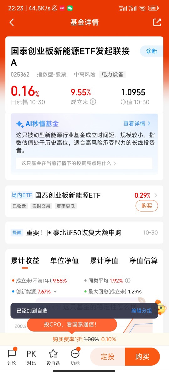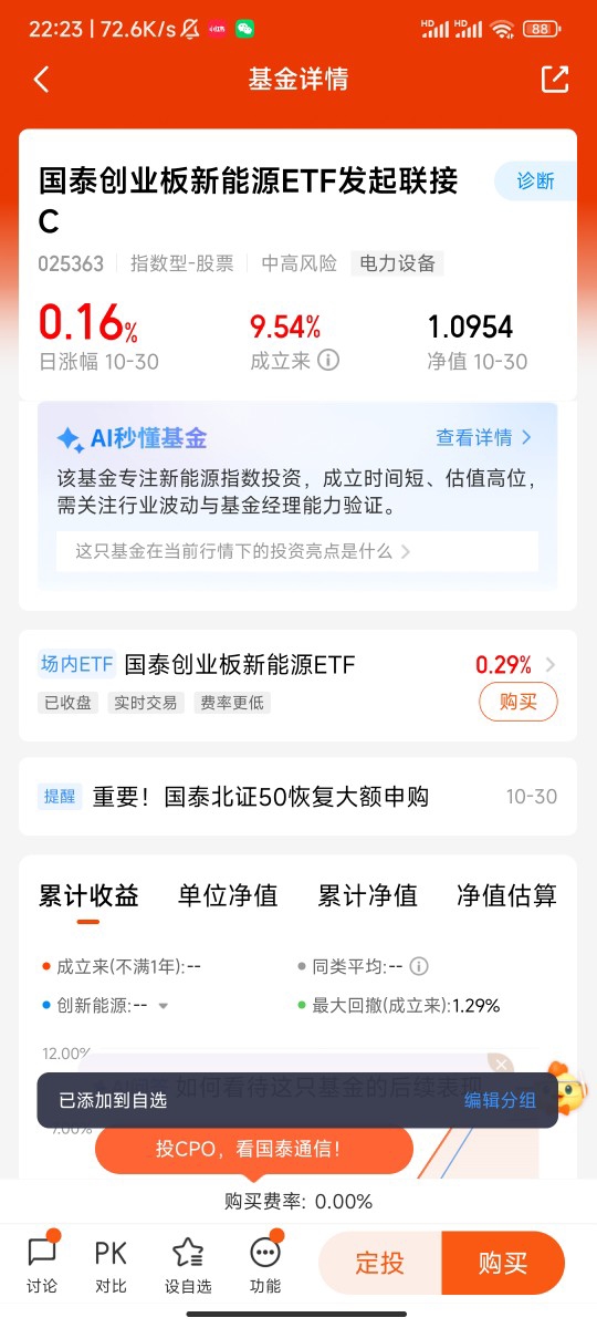 国泰创业板新能源ETF发起联接A(OTCFUND|025362)