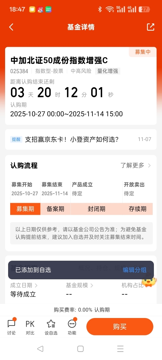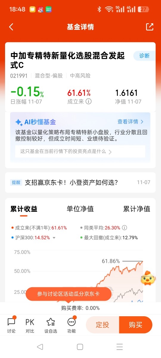 这只基金 10 月底刚发行,聚焦北证 50 指数,成分股里 88% 是高新技术企业,40% 为专精特新企业,精准贴合产业升级方向,能一站式捕捉北交所创新型中小企业的成长红利。其 “指数跟踪 + 量化增强” 的策略很亮眼,既能拿到北证 50 的 收益,又能靠量化多因子模型优选个股赚 收益,且借助 AI 优化因子组合适配不同行情,还通过分散投资控波动。它和同由林沐尘管理的专精特新基金相比,覆盖北交所核心资产,避免了单一专精特新标的集中风险。