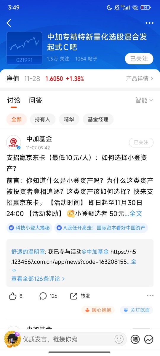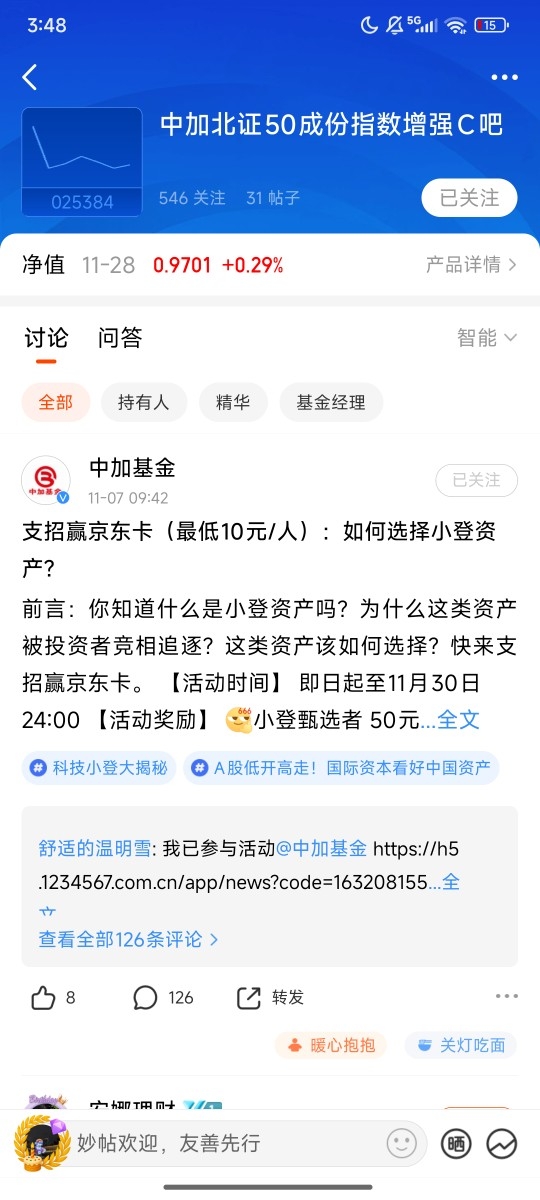 #如何选择小登资产#我选$中加北证50成份指数增强C$, 北证50指数由北交所中规模大、流动性好、最具市场代表性的50只上市公司证券组成,可以综合反映北交所的整体市场表现。从行业发展的成长性来看,医药创新领域、计算机创新领域等有望出现较强的爆发性,其中计算机创新领域可能更多和AI产业、机器人产品等发展相关,一旦中小型企业在某些细分领域做出一些重要产品,将获得较高的成长性。