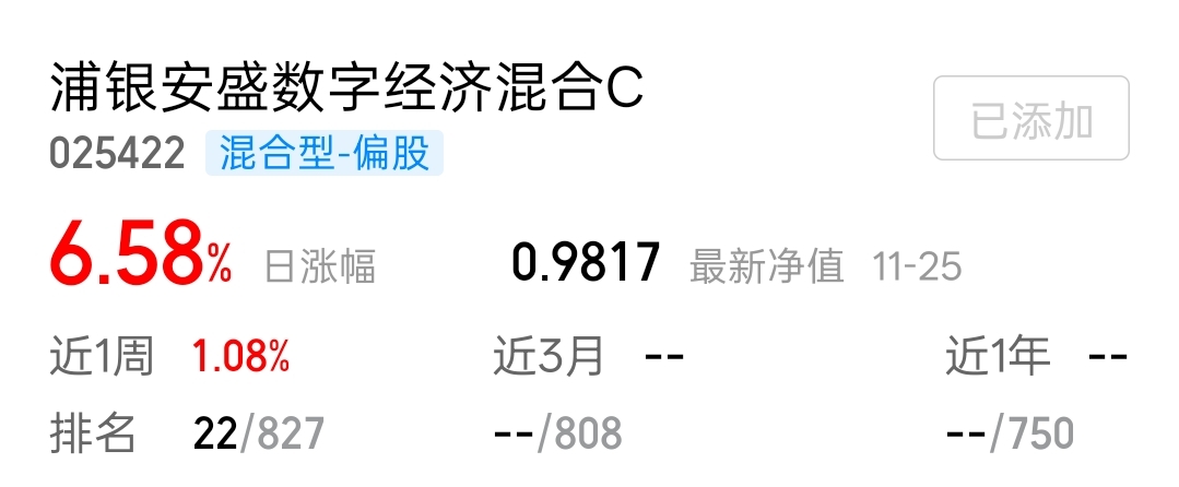 $浦银安盛数字经济混合A(OTCFUND|025421)$ A类产品长线持有更划算,$浦银安盛数字经济混合C(OTCFUND|025422)$ C类产品波段操作更灵活,我先加入自选跟踪,待合适时机投上一波。