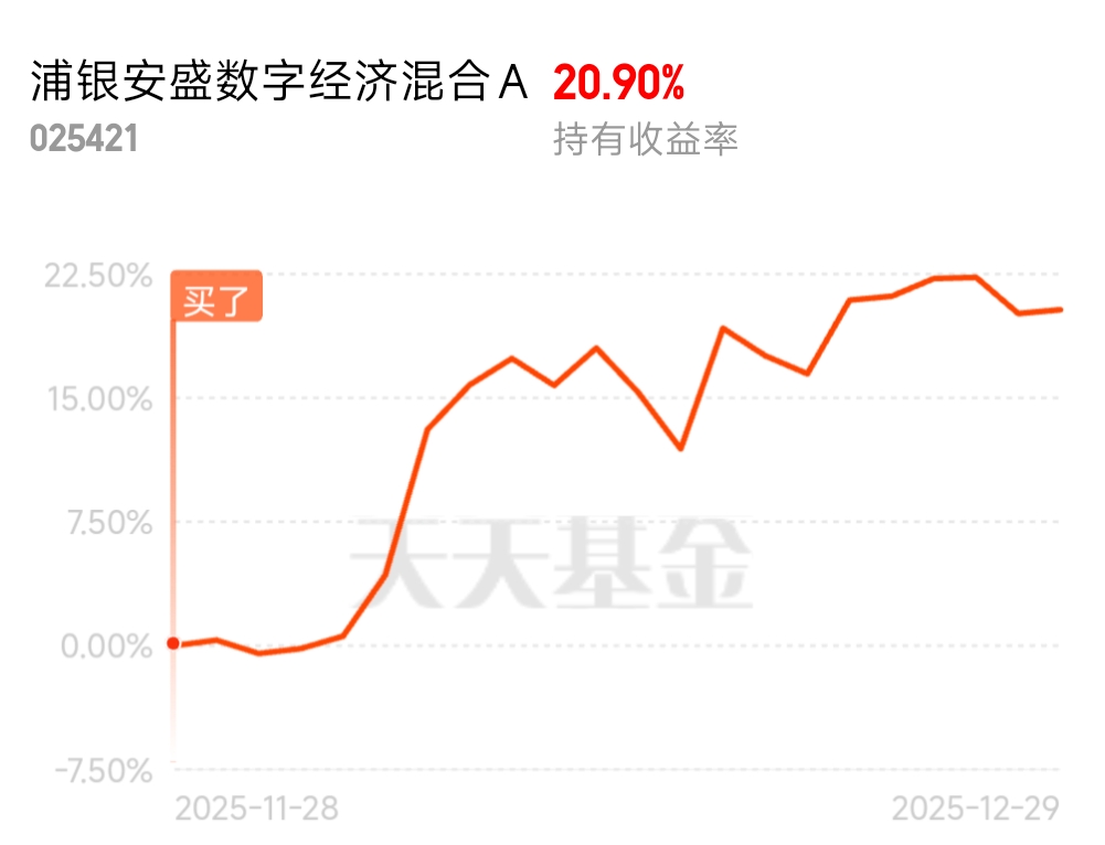 看业绩能发现浦银数字经济主攻CPO赛道,所以PCB板块补涨的时候它表现会稍弱一点,这很正常。