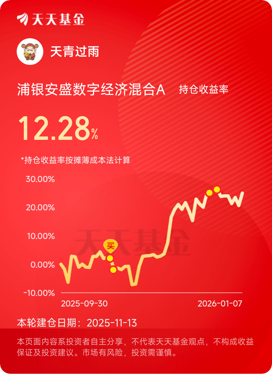 #2026我的新年投资计划# 浦银安盛数字经济新晋卷王!聚焦CPO强势领跑,新基无历史负担调仓灵活,近月大涨16.25%$浦银安盛数字经济混合A$ #晒收益#