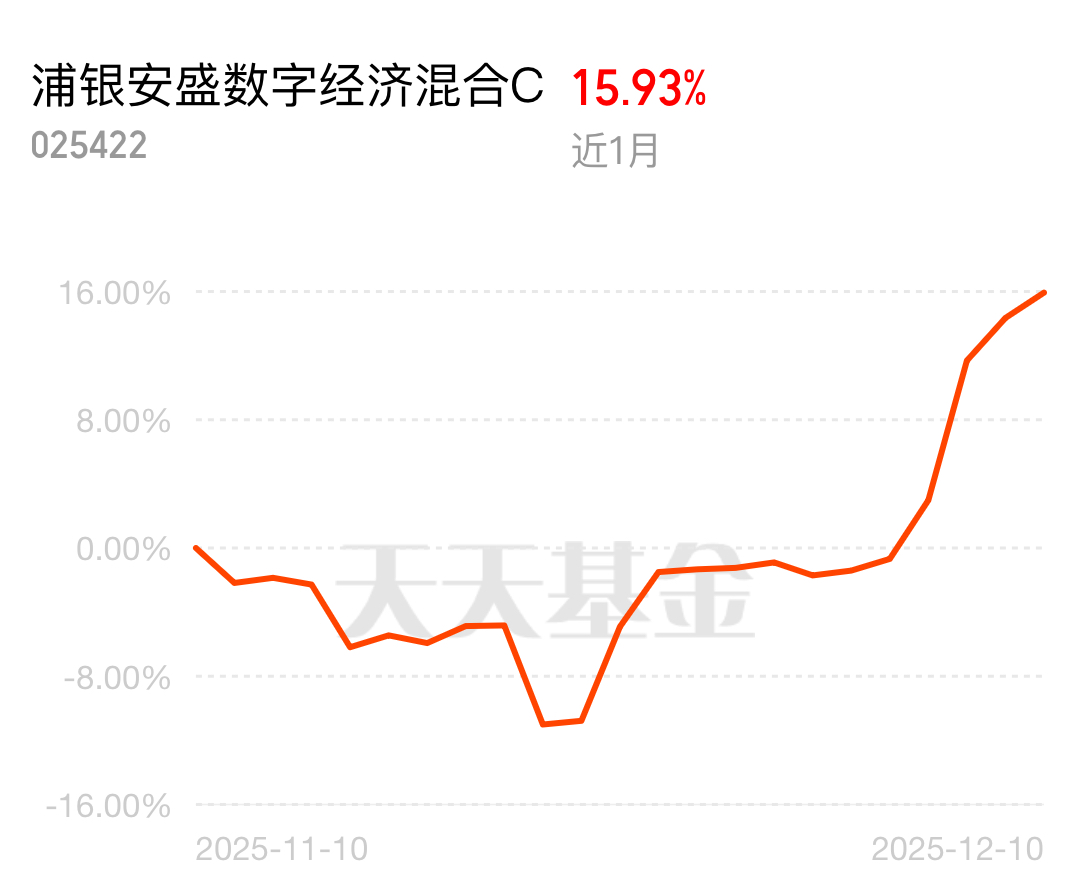CPO也是强到可怕,主要是产业事件井喷:谷歌TPU跟英伟达GPU对打、关键零部件全球缺货、海外高端算力解禁,全是实打实的利好。浦银安盛数字经济虽然还看不到持仓,但从业绩表现看八九不离十投的就是CPO,现在盘子小爆发力十足,看好CPO可以留意下,等合适机会再上车不迟。$浦银安盛数字经济混合C$