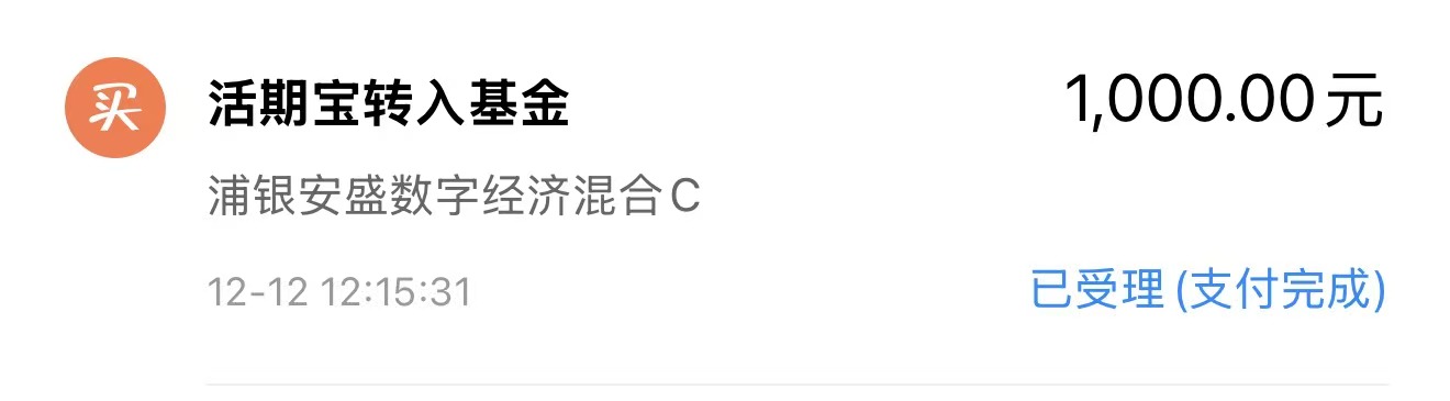 加仓$浦银安盛数字经济混合C(OTCFUND|025422)$1000元!