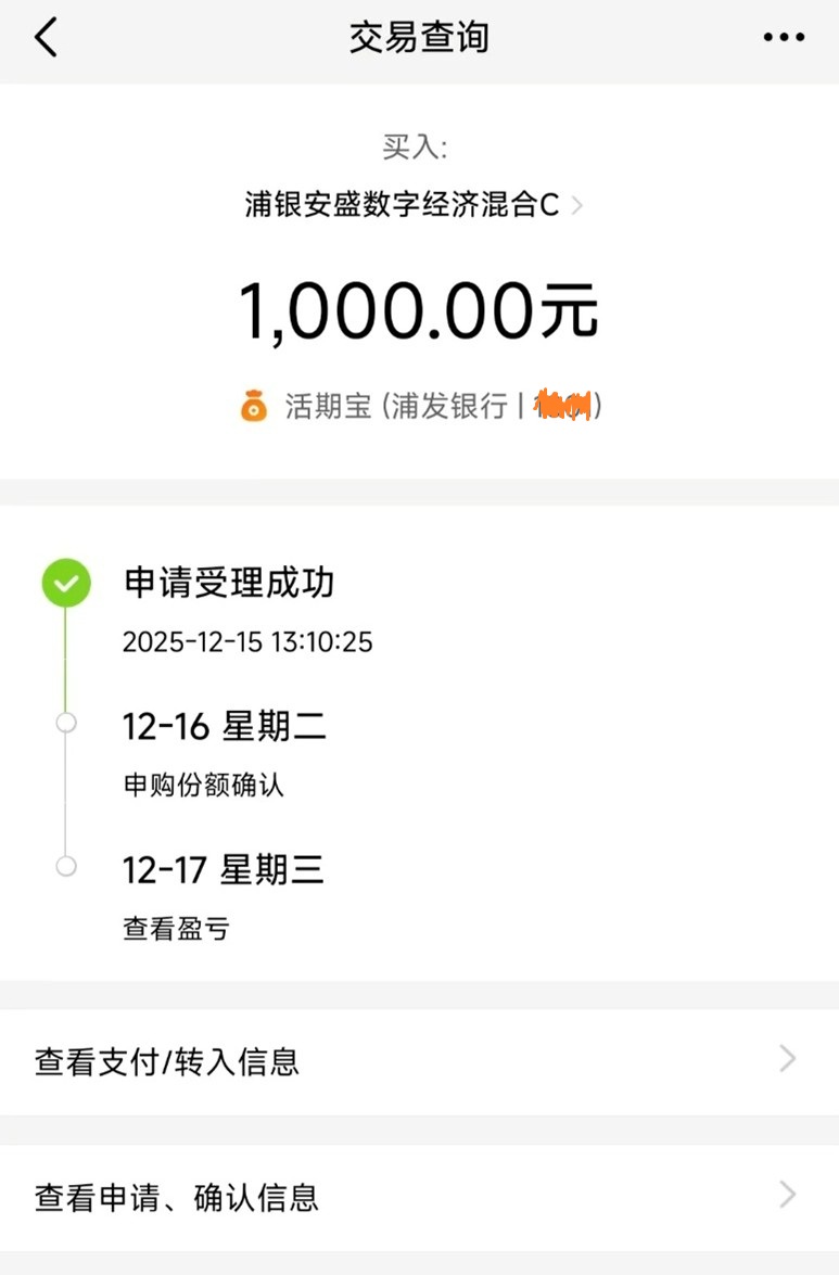 目前CPO板块反弹趋势已确立,我认为现在布局后面仍有吃肉机会,因此选择今天再次加仓一笔$浦银安盛数字经济混合C(OTCFUND|025422)$。