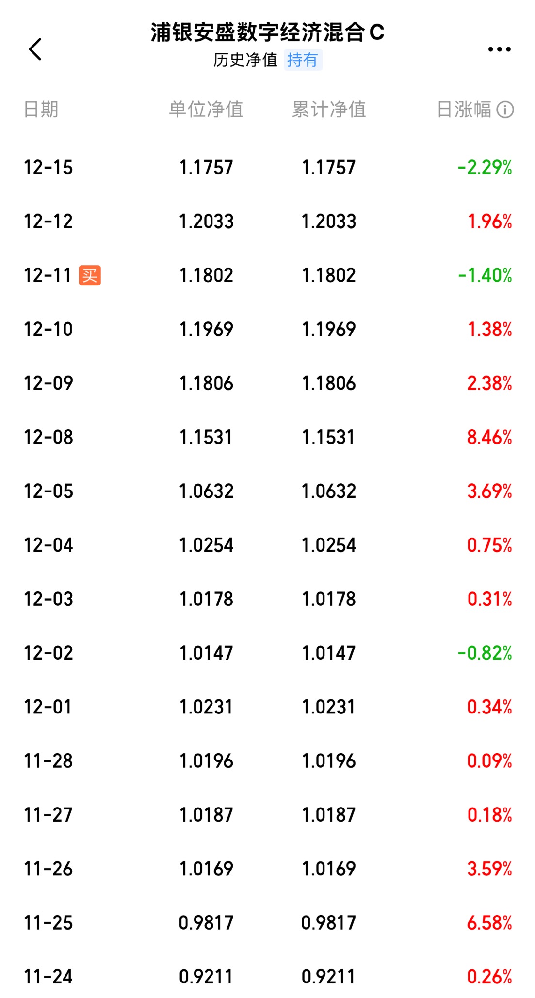 说到CPO,我昨天也趁回调低吸了$浦银安盛数字经济混合C$ ,妥妥的大黑马。近1月涨了21.39%,11月24日以来仅3个交易日回调,13个交易日上涨!确实牛气。
