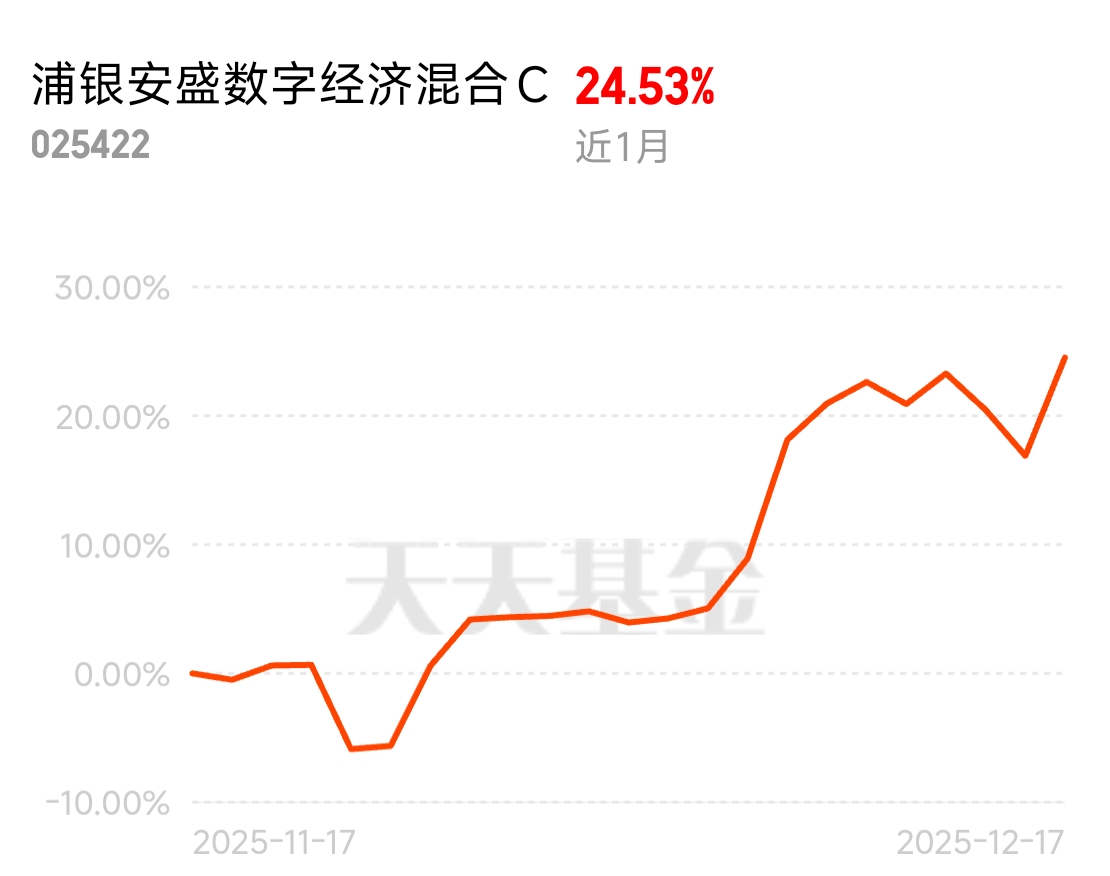 证券异动引燃市场,科技板块更是领涨居前,我的$浦银安盛数字经济混合C$ 今日上涨6.53%,CPO主线地位再次得到确认呀。而且浦银安盛这只盘子小,调仓灵活,之前震荡相对抗跌,如今反弹也是立马能够跟上行情。近一月实现收益24.53%,特别还是在同类平均负收益的情况下,进攻性可见一斑。