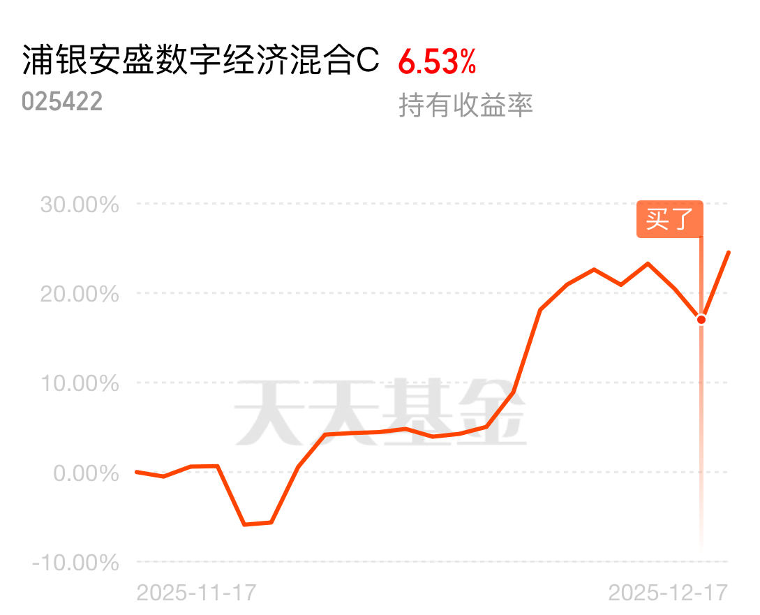 CPO今天再次大涨,我重仓CPO的吃肉了,晚上净值更新后赚了3万元,你可以永远相信CPO,这句话说得真不错。其中$浦银安盛数字经济混合C$ 这个CPO今天再次封神了,今天大涨6.53%,不愧是黑马,之前跌的少,反弹起来还涨的多。这样一对比,发现一些老牌CPO网红基不够看了。我昨天精准买入,今天吃肉!