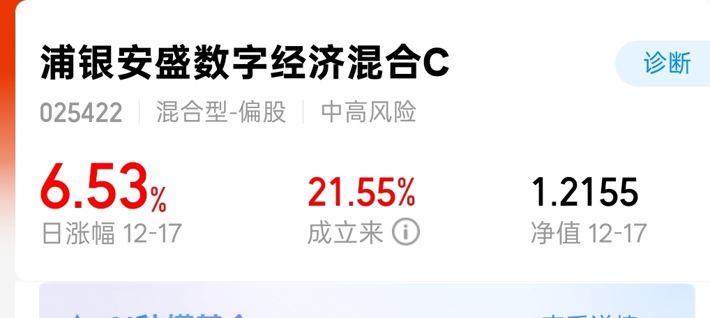$浦银安盛数字经济混合C$ 这只刚上市的CPO新基真是猛,今天大涨6.53%,黑马跟着吃肉。