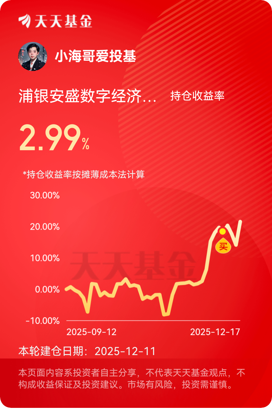 太猛了,大涨6.53%,我持有的$浦银安盛数字经济混合C$(025422)主要聚