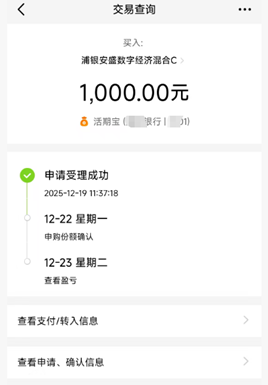 年底的行情变化不会影响我的决策,我对看好的板块始终有信心,今天继续加仓一笔$浦银安盛数字经济混合C(OTCFUND|025422)$。