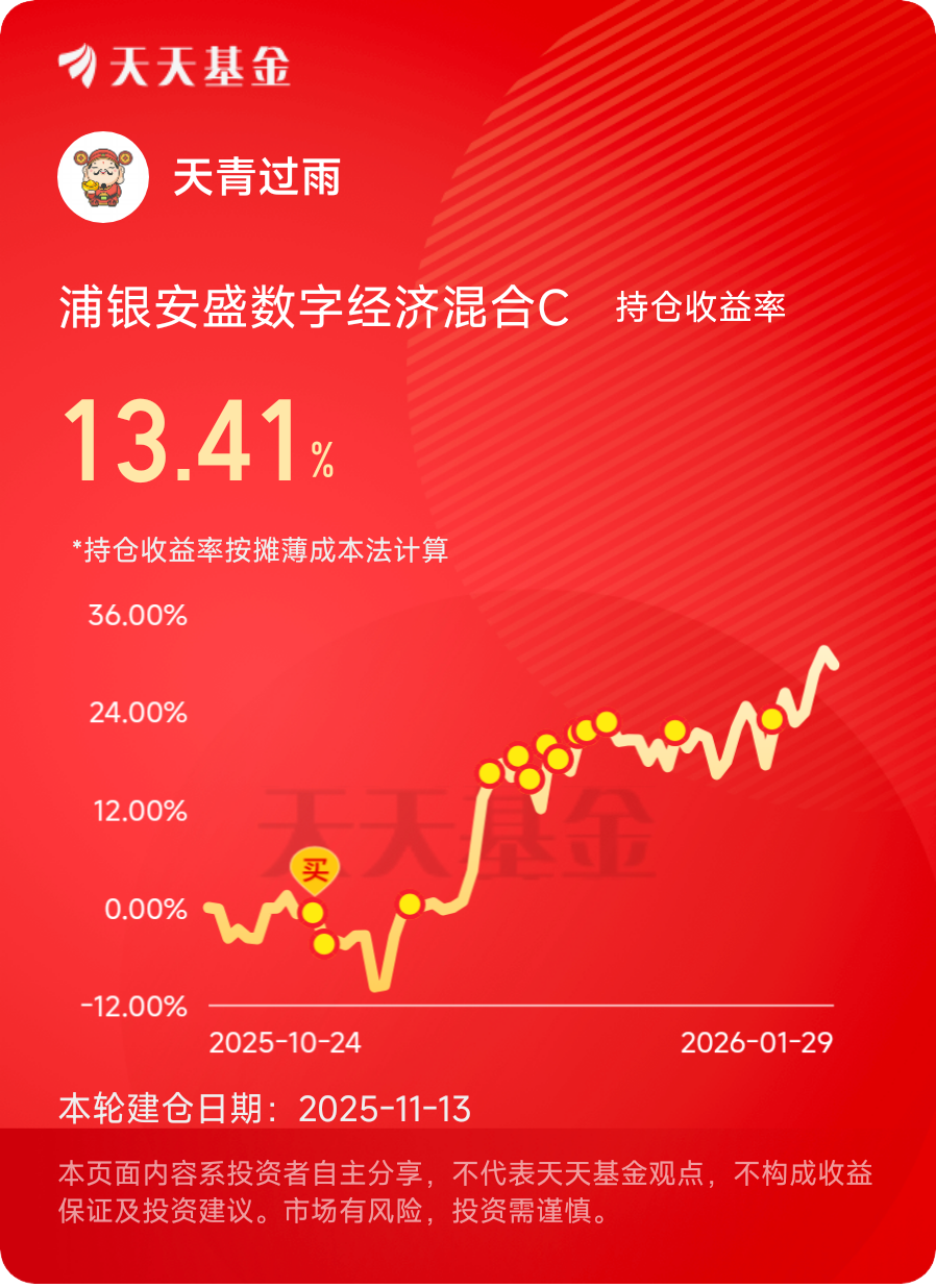 #煤飞色舞!资源机会来了?# CPO作为算力刚需赛道,2026规模化商用可期,浦银数字经济C近3个月上涨29.75%,锚定CPO高弹性成长$浦银安盛数字经济混合C$ #晒收益#