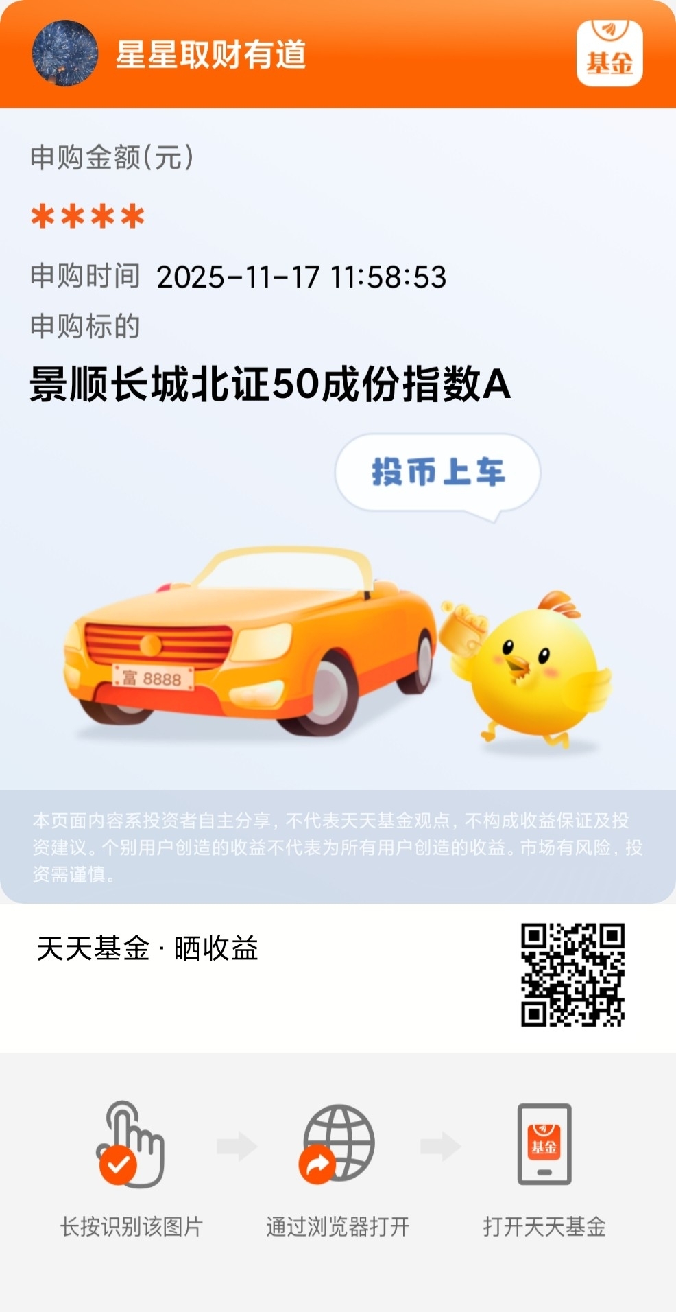 一直关注北证50的专精特新企业,政策也一直在发力,这波新发基金有点感兴趣,上车试试#晒收益#