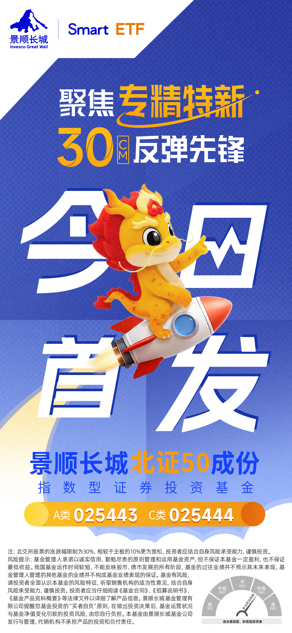 聚焦专精特新 30cm反弹先锋,景顺长城北证50成份指数基金A/C(代码:025443/025444)今日首发!!