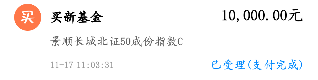 但目前市面上北证50老基多多少少都在限购,观察到景顺今天开售了一只北证50指数新基,这只正在募集,可以大额交易,不用担心限额,今天来买进1w的筹码,跟着建个仓位。