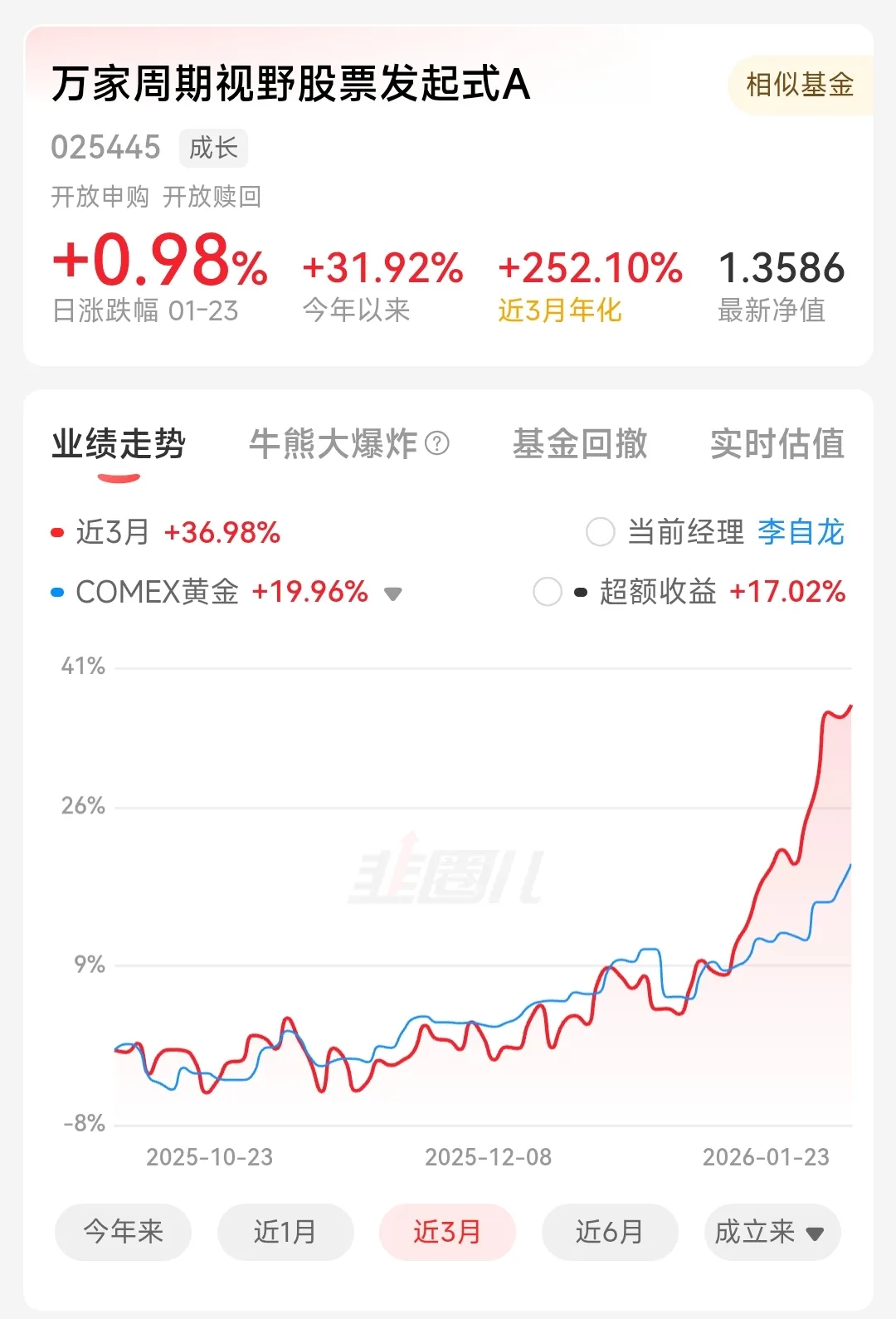 到了四季度,虽然A股市场整体风格从科技成长一枝独秀转向成长与价值的再平衡,但这只基金依然坚定聚焦黄金产业链,看好黄金股在经营杠杆效应、盈利估值双击、流动性改善等逻辑支撑下的中长期机会。