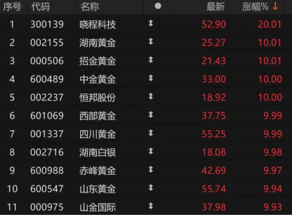 申万贵金属指数的成分股集体涨停,甚至还有20cm晓程科技,它是今年黄金产业链涨幅第二的标的。