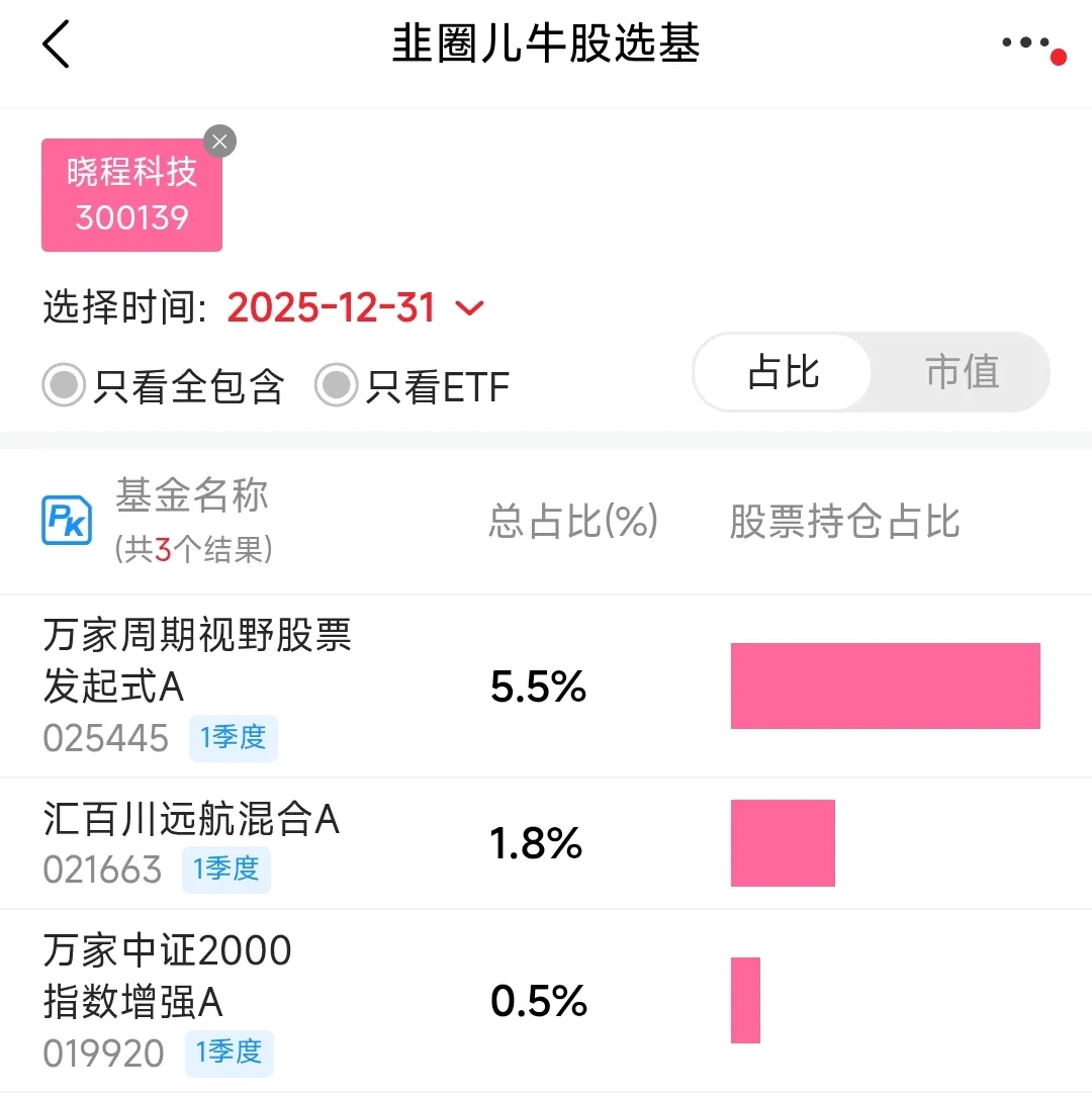 我用的牛股选基搜了一下,持有晓程科技的基金很少,即使黄金股ETF跟踪的中证沪港深黄金产业股票指数,其权重才1.12%。