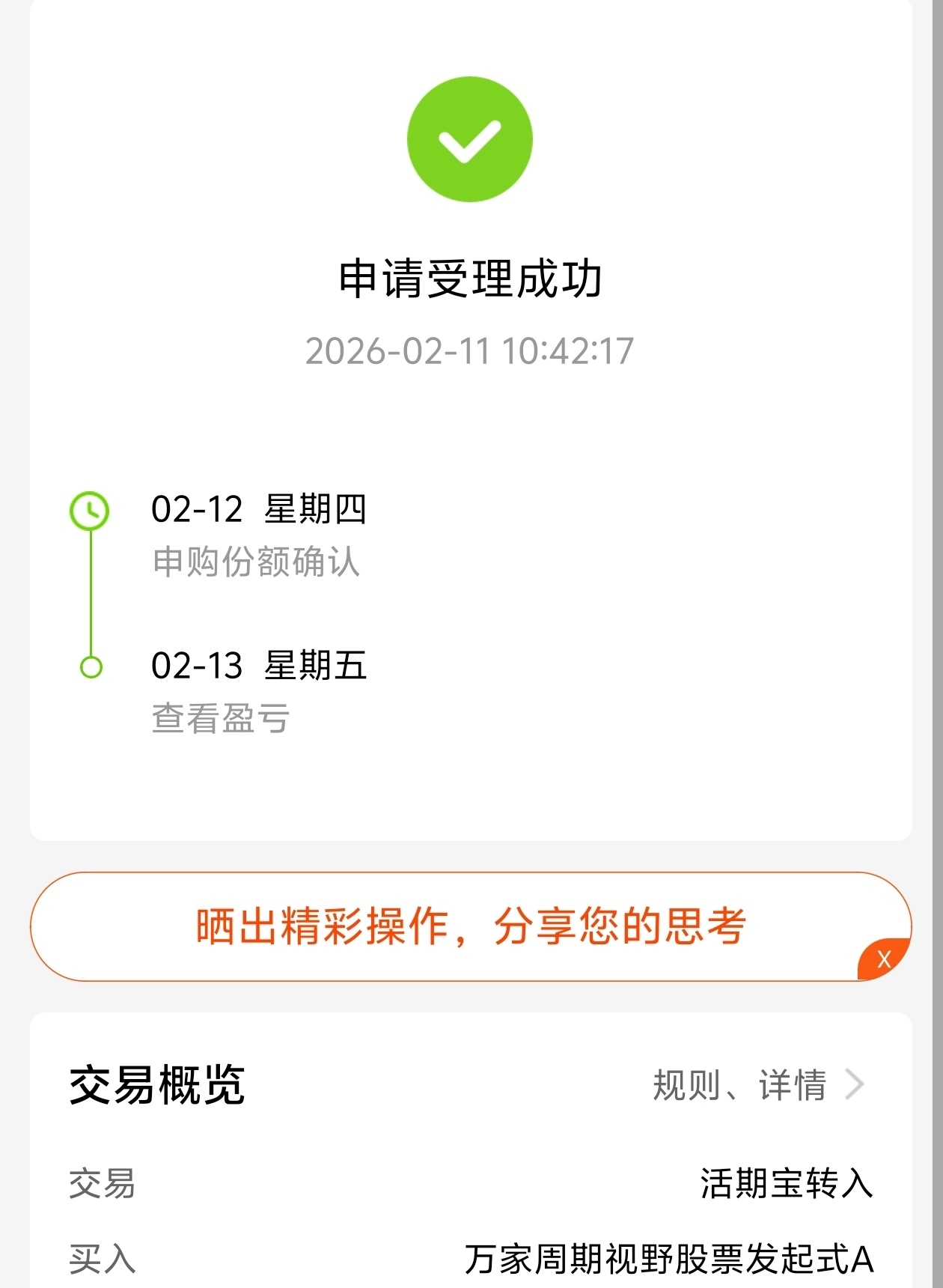 给机会就接着,相信经理管理能力$万家周期视野股票发起式A$