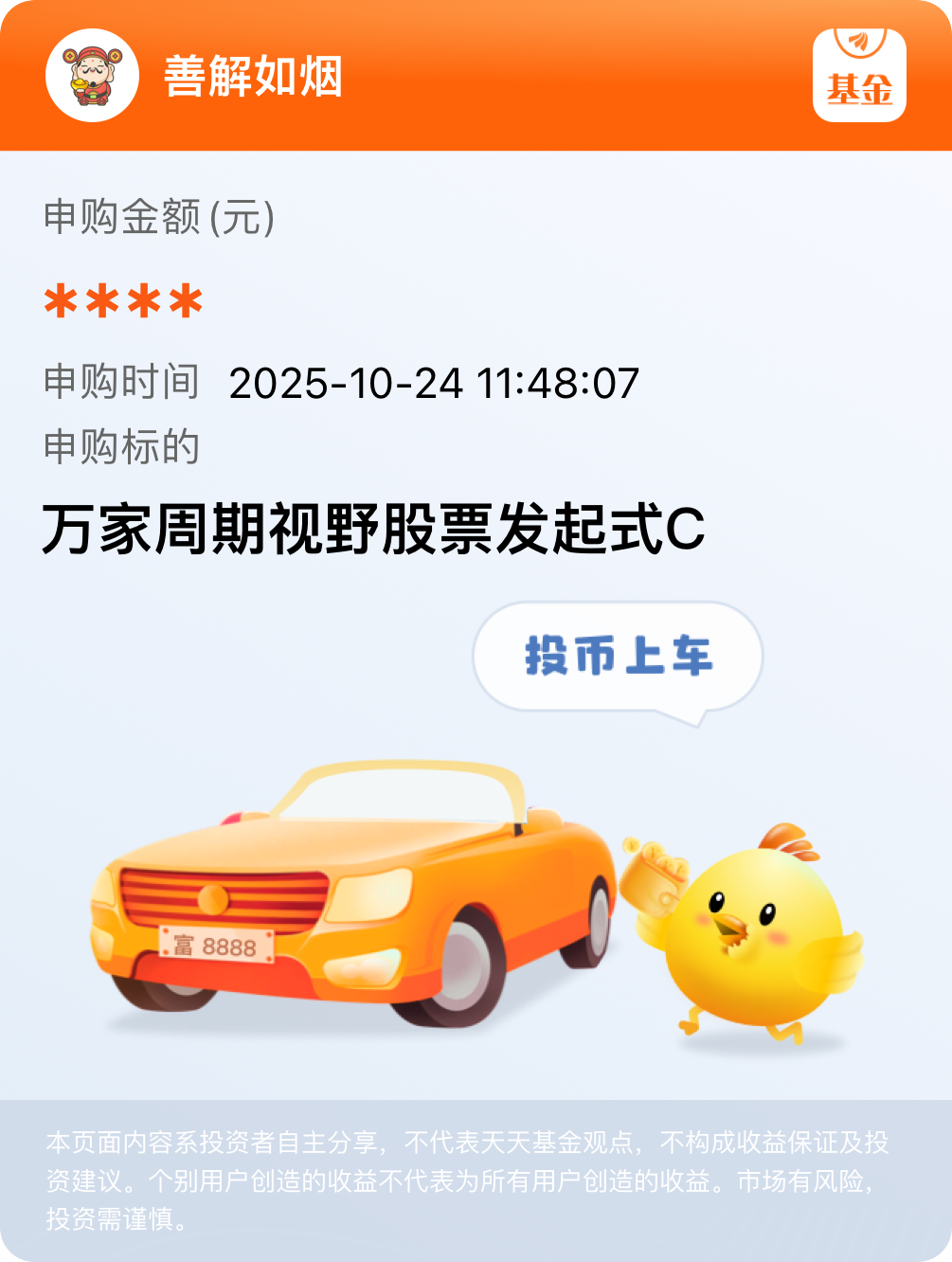#晒操作# $万家周期视野股票发起式C$ 还没被太多人抢,规模小更容易操作,基金经理能更灵活调仓,现在回撤正是上车的好时机