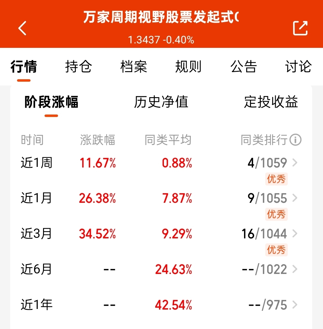 万家周期视野股票发起式C表现亮眼,盘中涨+3.44%,近一个月涨超26%。