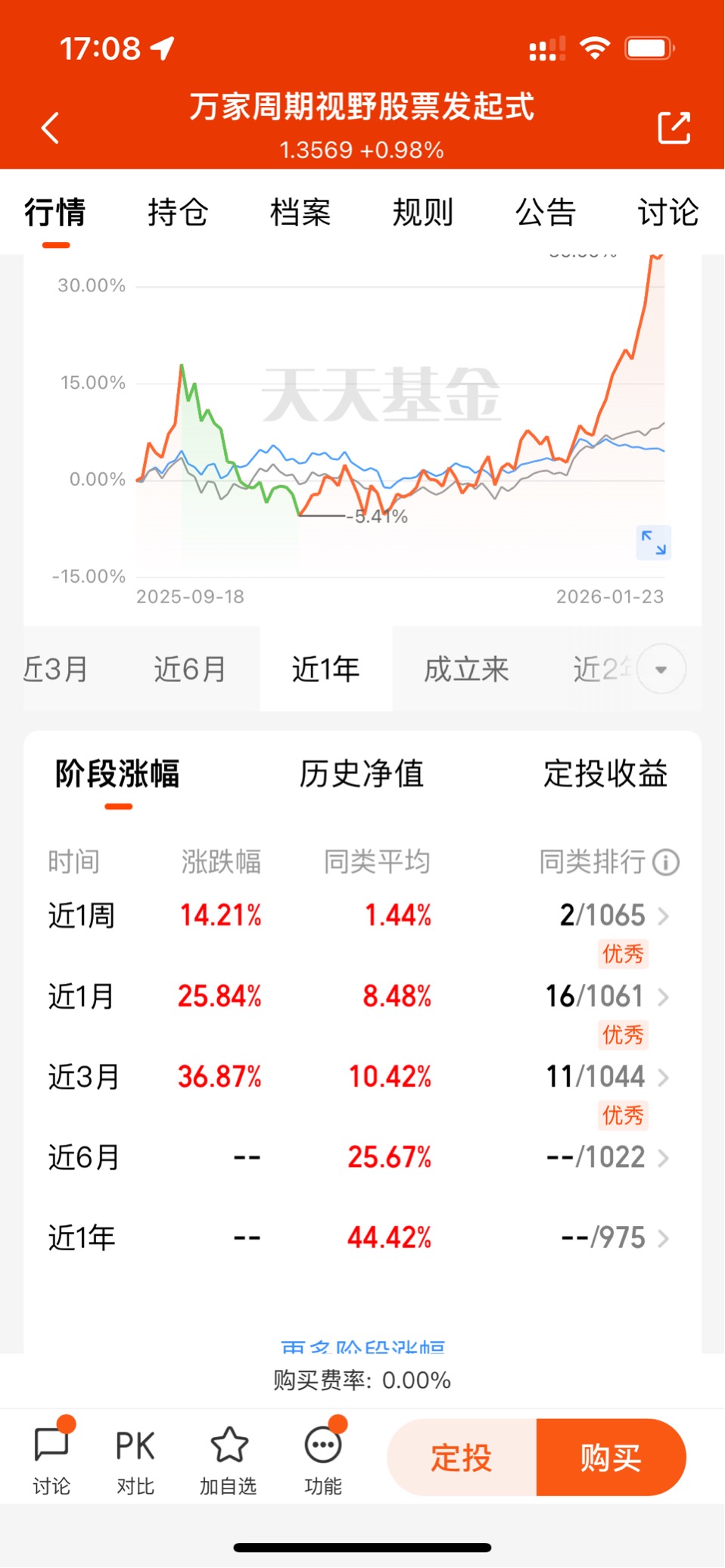 有色最近还是挺给力的,正好这两天关注了这个好基金。2026周期类的逻辑反而更清晰了,近一周14.21%,排名优秀,涨多跌少,值得关注。