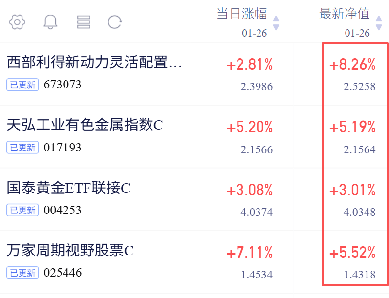 有色金属行情火爆,西部利得新动力C大涨8.26%!