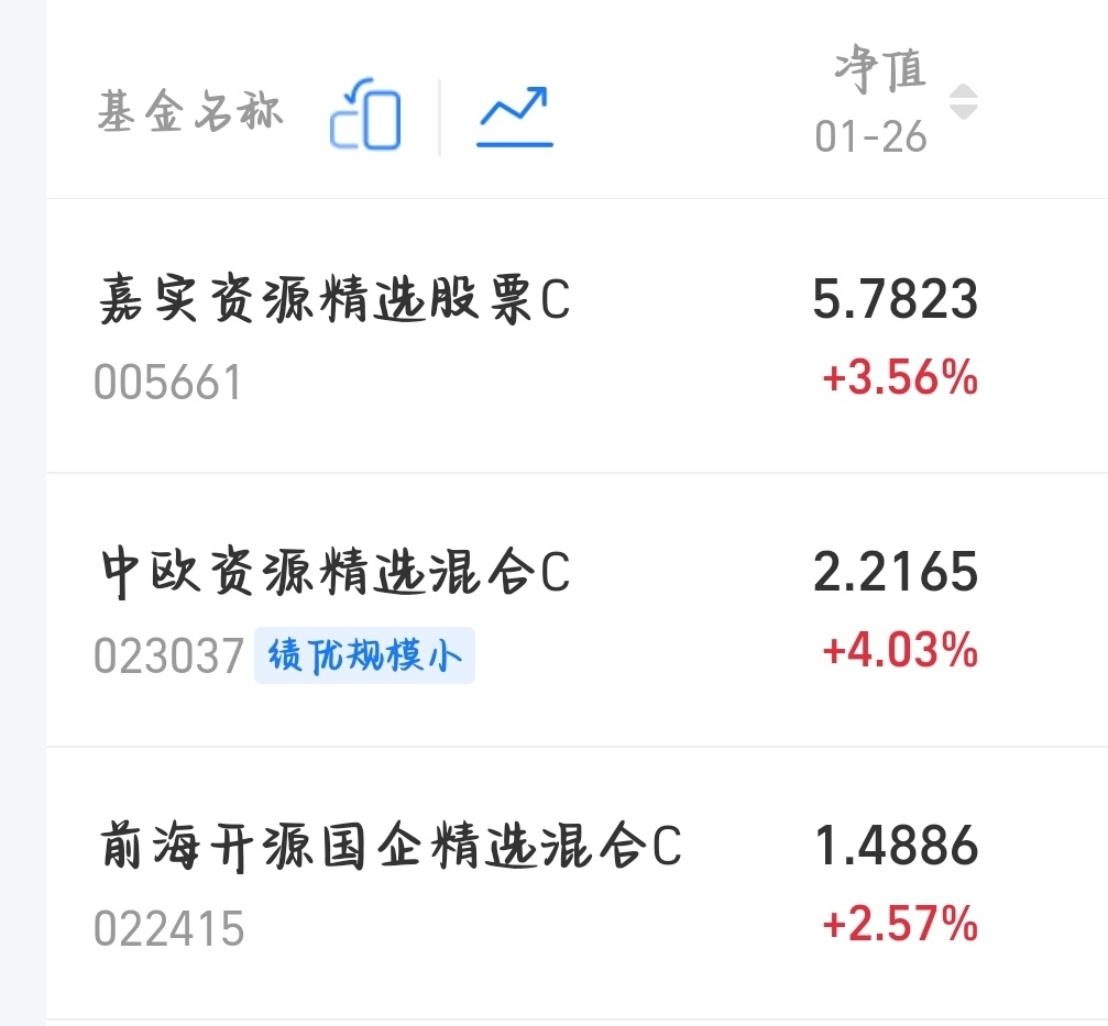 最近有色行情太火了,$中欧资源精选混合发起C$ 直接起飞!今日大涨4.03%,近半年涨超85%,成立一年多回报翻倍,实力在线。基金经理精准踩中铜铝稀土轮动,重仓紫金矿业、厦门钨业等强势标的,调仓超灵活。当下贵金属、工业金属齐发力,这只基牢牢抓住核心赛道,跟着行情吃肉,想布局有色的朋友,这只主动管理基值得重点关注