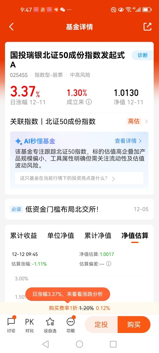 $国投瑞银北证50成份指数发起式(A:025455;C:025456)$紧密跟踪北证50指数,为投资者提供一款聚焦北交所核心资产的工具化产品。12月11日北证50指数大涨3.84%,投资者不妨借助$国投瑞银北证50成份指数发起式$一键打包北交所核心资产,分享北交所核心资产成长红利。@国投瑞银基金