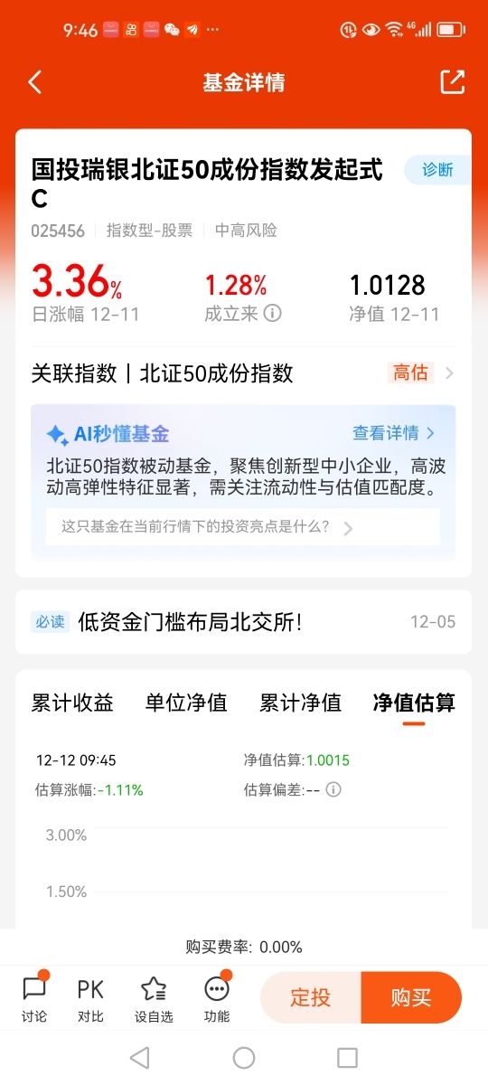 2.为什么说相比直接投资北交所股票,北证50指数基金的参与门槛更低?个人投资者直接投资北交所需满足“50万金融资产+2年交易经验”的硬性条件,门槛较高。而通过公募基金,如国投瑞银北证50成份指数发起式(A:025455;C:025456),申购和定投起点均10元起,无需额外资质,门槛更低,就能一键布局北证50指数成分股,真正实现“普惠参与”。