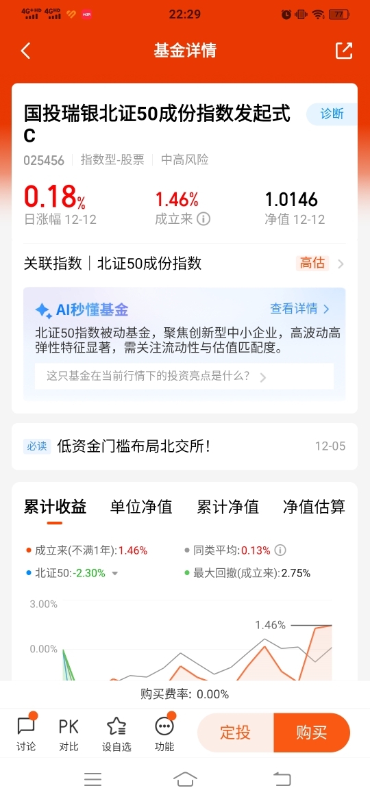 超低投资门槛:北证50指数基金最低1元起投,彻底打破了50万元的资金壁垒。
