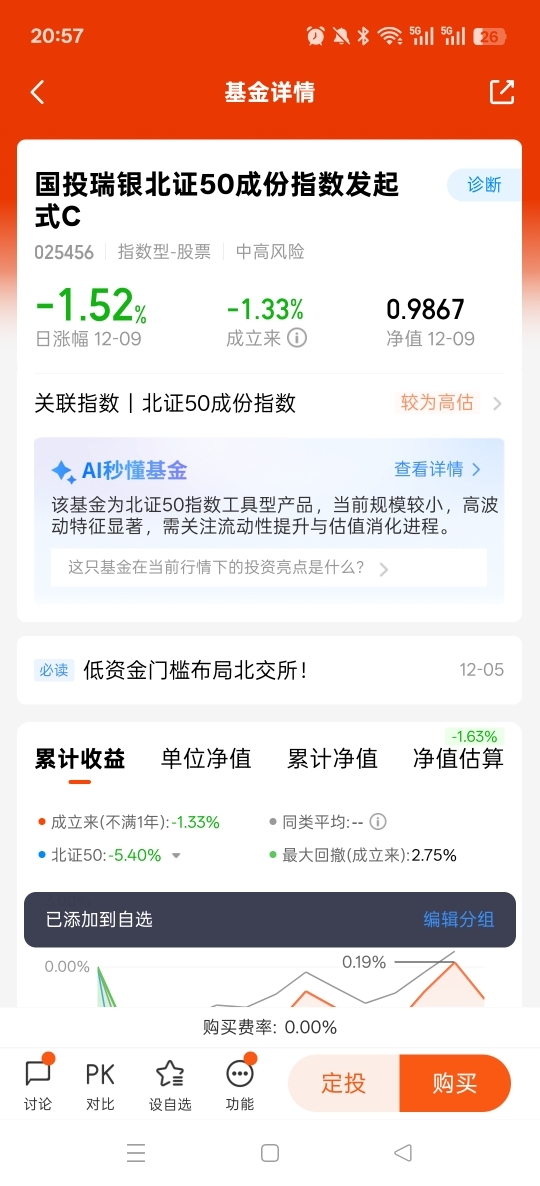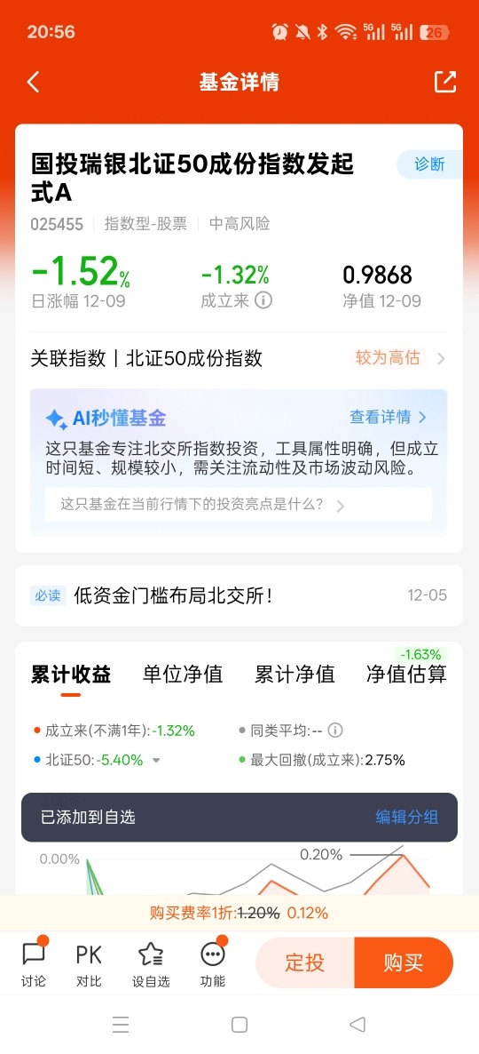 直接买北交所股票,我这点工资存够50万得10年;但这只基金1元就能买,A类025455、C类025456都能小额定投——我现在每月攒500块投C类,不用操心选股,还能分散单只股票的风险,相当于用“奶茶钱”间接抱了50家北交所企业的大腿。