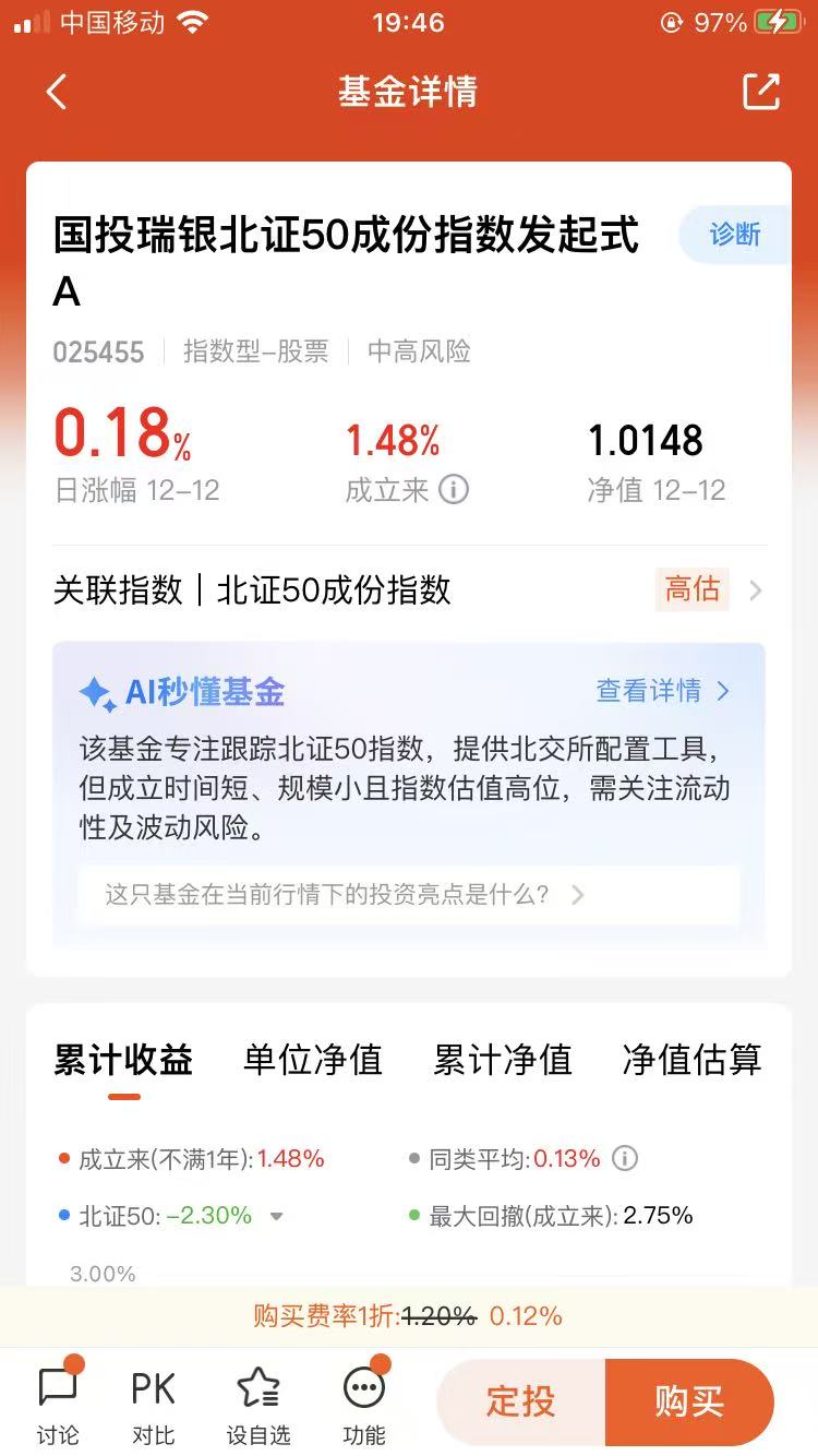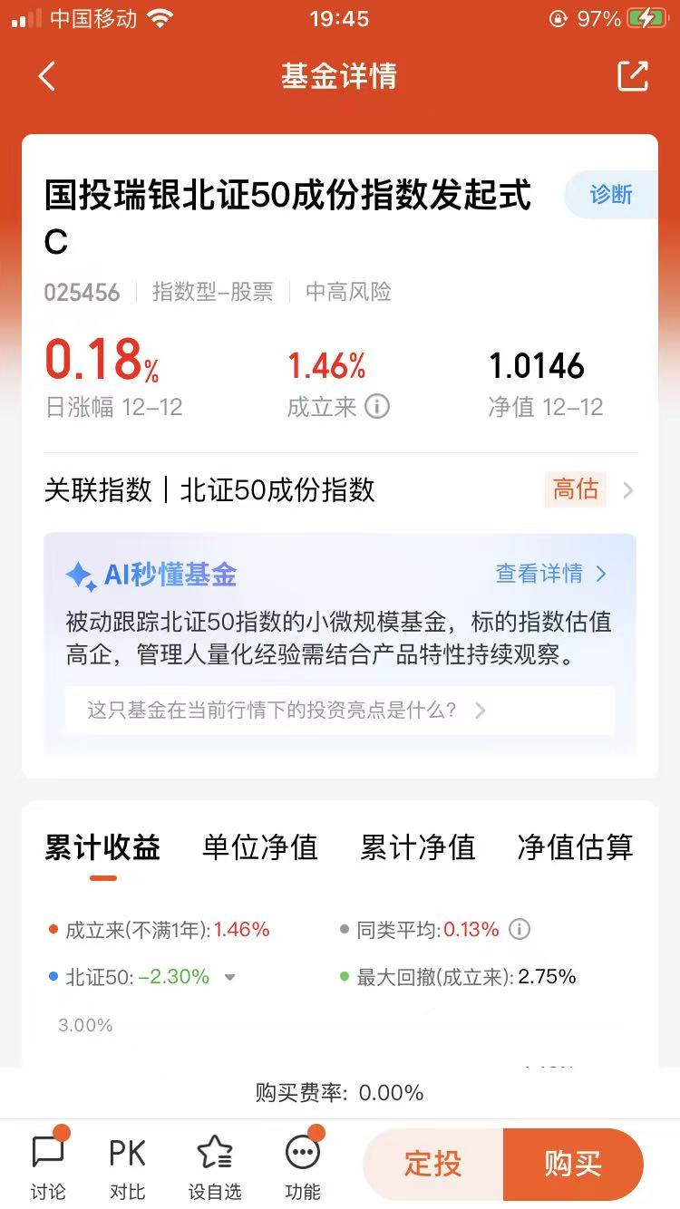 2、 北证 50 指数基金参与门槛更低的原因:直接投北交所股票需满足 50 万元日均资产 + 2 年证券投资经验的开户条件。而国投瑞银这类北证 50 指数基金,大多 1 元即可起投,无需满足北交所开户的资金和经验门槛,让中小投资者能轻松参与北交所相关资产投资。
