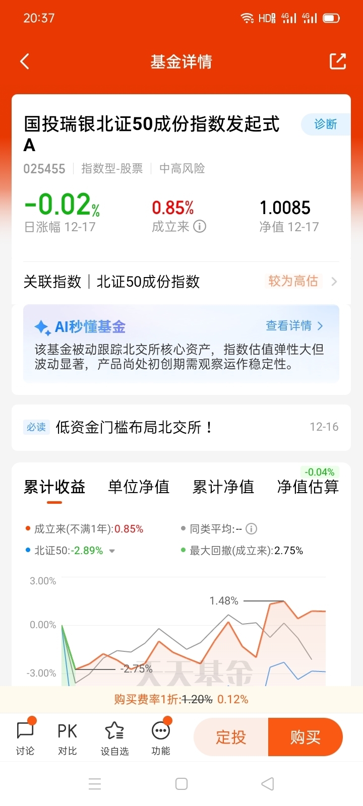 1. 突破交易门槛限制:北交所个人投资者需满足"2年交易经验+50万元资产"的准入要求,而北证50指数基金1元起购,普通投资者可通过公募基金间接参与北交所投资,分享专精特新企业成长红利。