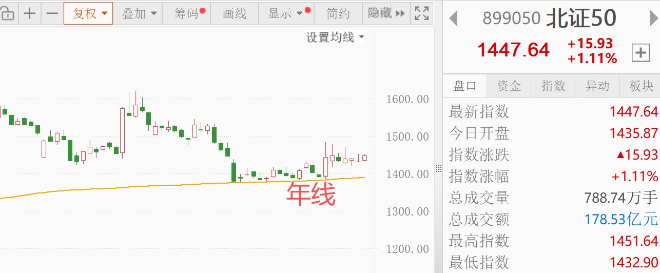 北证50今天又有点异动的样子,技术面维持在年线附近震荡蓄势,企稳之后,随时有机会上攻。