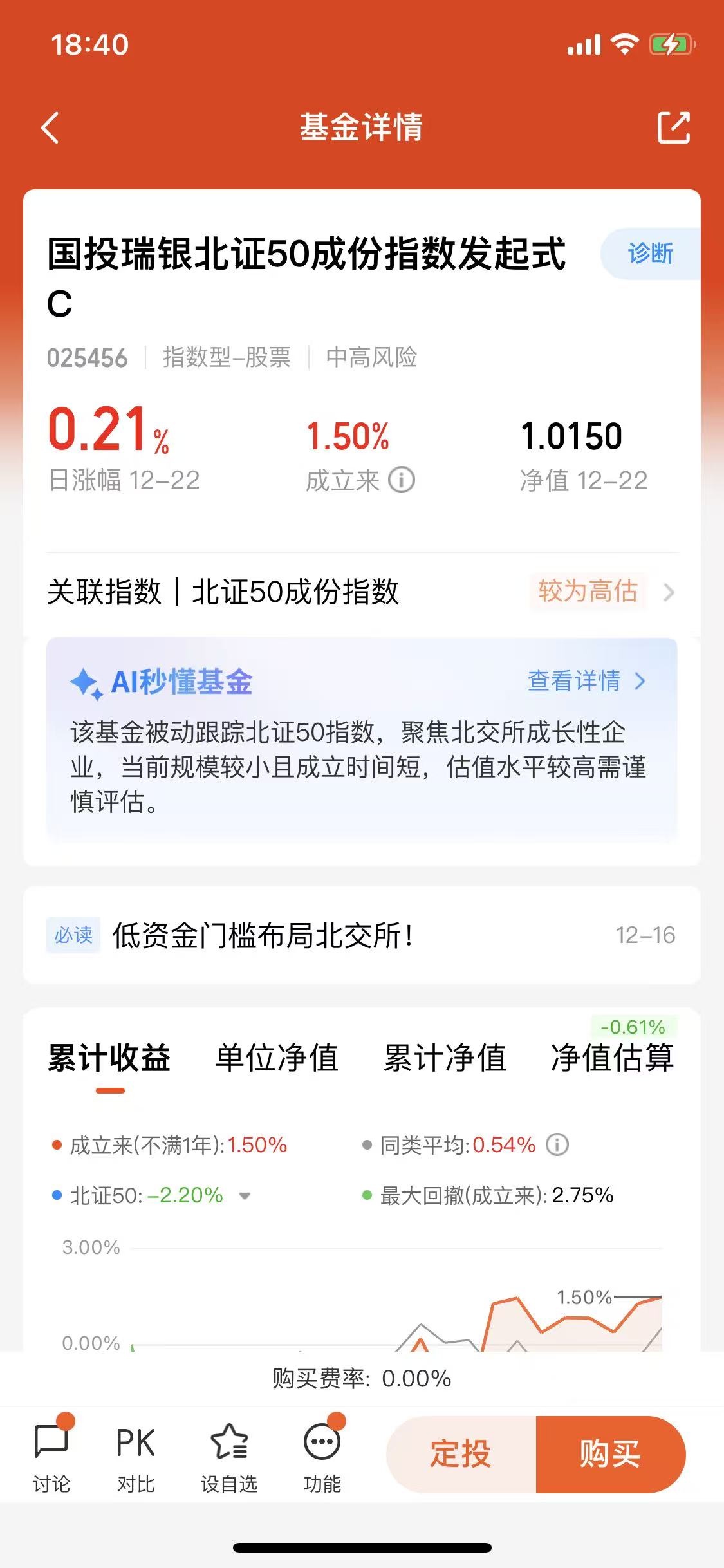对于普通投资者来说,不管是作为长期配置的一部分,还是作为北证50投资的切入点,都是一个非常合适的选择。更难得的是,它的低费率、免赎回费门槛低,体验上足够轻便,这在当前市场环境里非常难得。未来随着北证50进一步走向成熟,这只基金的配置价值也会越来越凸显。@国投瑞银基金