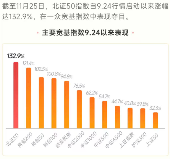 北证50指数的高弹性核心源于其成分股独特的交易规则与自身属性。从交易限制来看,北证50成分股单日涨跌幅限制为30%,这一比例显著高于主板市场的10%、创业板与科创板的20%,更大的涨跌幅空间直接赋予了指数更强的波动潜力。当市场整体风险偏好提升时,资金往往更青睐这类具有高成长预期的标的,进而推动北证50指数展现出比主板乃至其他创业板指数更强劲的进攻性,波动幅度也随之进一步放大,因此具备鲜明的高弹性特点。