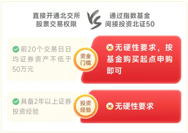 2. 为什么说相比于直接投资北交所股票,北证50指数基金的参与门槛更低?
