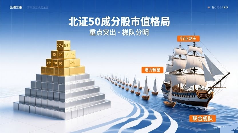 截至最新数据,北证50指数的成分股市值分布,呈现 “重点突出、梯队分明” 的格局: