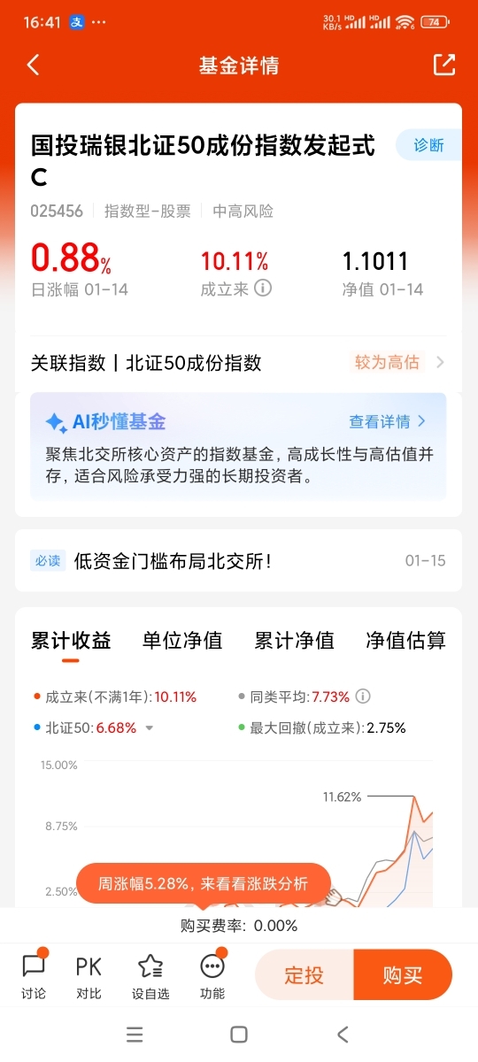 直接买卖北交所股票,监管要求个人投资者必须满足“50万元证券资产 + 2年证券投资经验”的硬性门槛。而通过北证50指数基金(如国投瑞银北证50等),你通常只需要1元或10元即可起投,不需要50万的资产证明,也不受投资经验限制,普通银行卡即可参与。