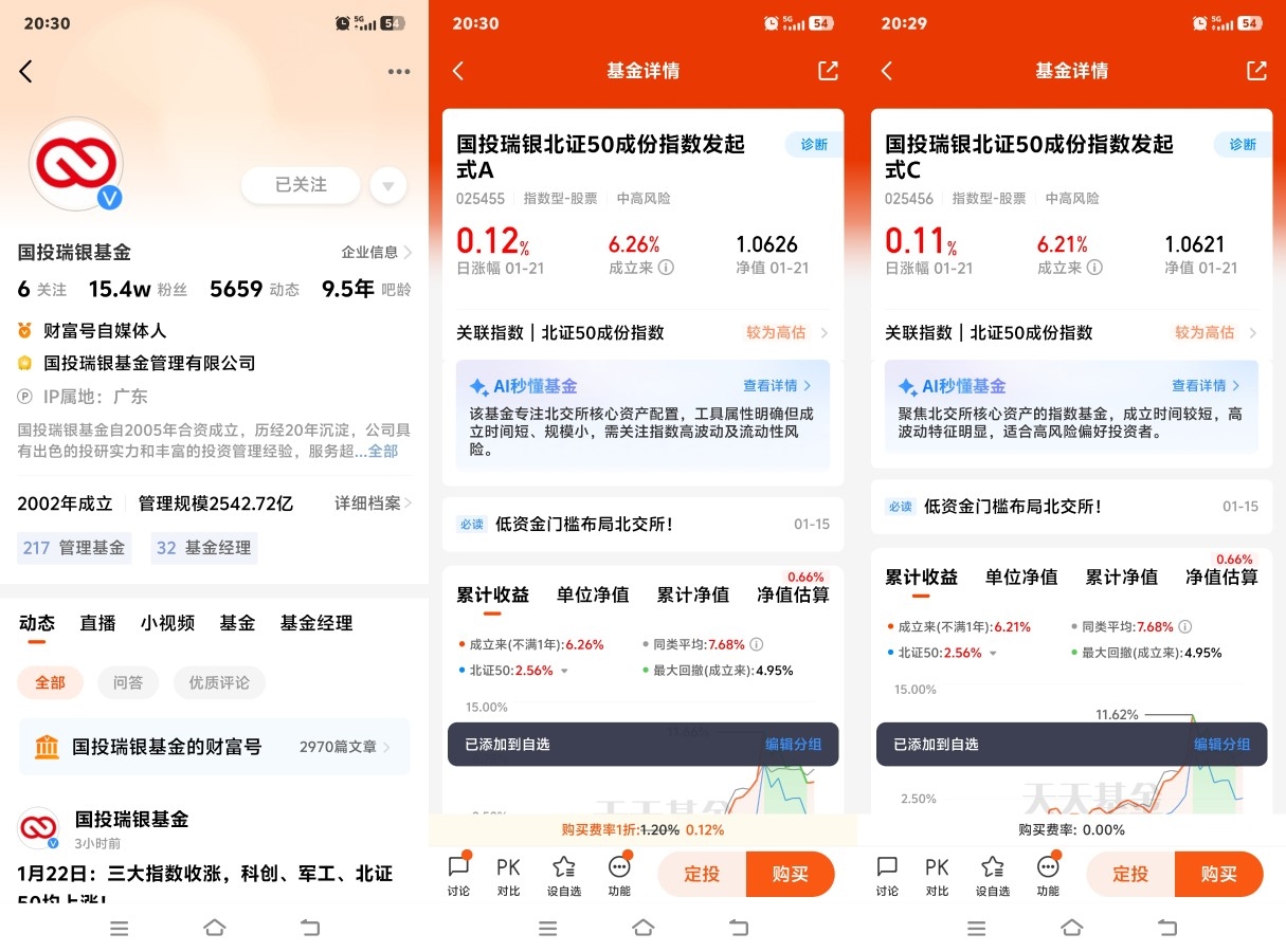 $国投瑞银北证50成份指数发起式C$ 的产品设计,完美适配普通投资者参与北交所投资的需求,核心优势突出。作为指数基金,该产品采用完全复制法紧密跟踪北证50成份指数,力求将年跟踪误差控制在4%以内,日均跟踪偏离度绝对值控制在0.35%以内,能精准复刻指数的收益与风险特征,让投资者纯粹分享指数成长红利。在费率方面,该基金C类份额具备明显优势,不收取认购费与申购费,持有期限超7天即可免赎回费,年管理费0.5%、托管费0.05%、销售服务费0.25%,综合费率处于市场低位,大幅降低了中短期投资的成本损耗。同时,基金打破了北交所股票50万元资产+2年交易经验的准入门槛,1元起购即可一键布局北证50核心标的,分散个股波动风险,解决了普通投资者选股难、门槛高的问题。