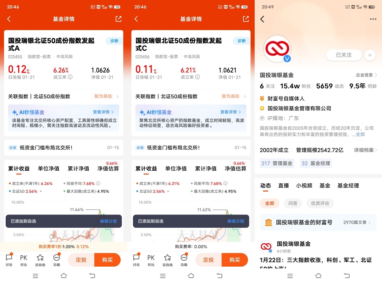 回答:直接投资北交所股票需满足20个交易日日均50万资产,还得有2年证券交易经验和C4及以上风险测评,准入门槛高。而北证50指数基金无任何资金和经验限制,普通投资者可直接申购,轻松突破权限壁垒。