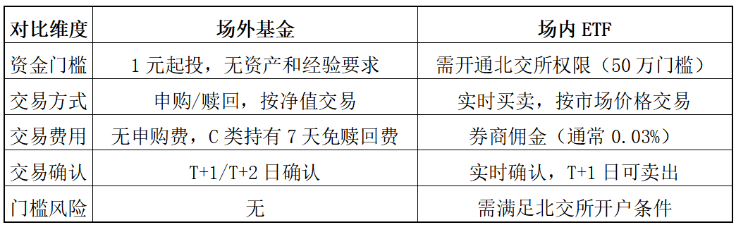 操作门槛:无需单独开通北交所权限,普通基金账户即可参与