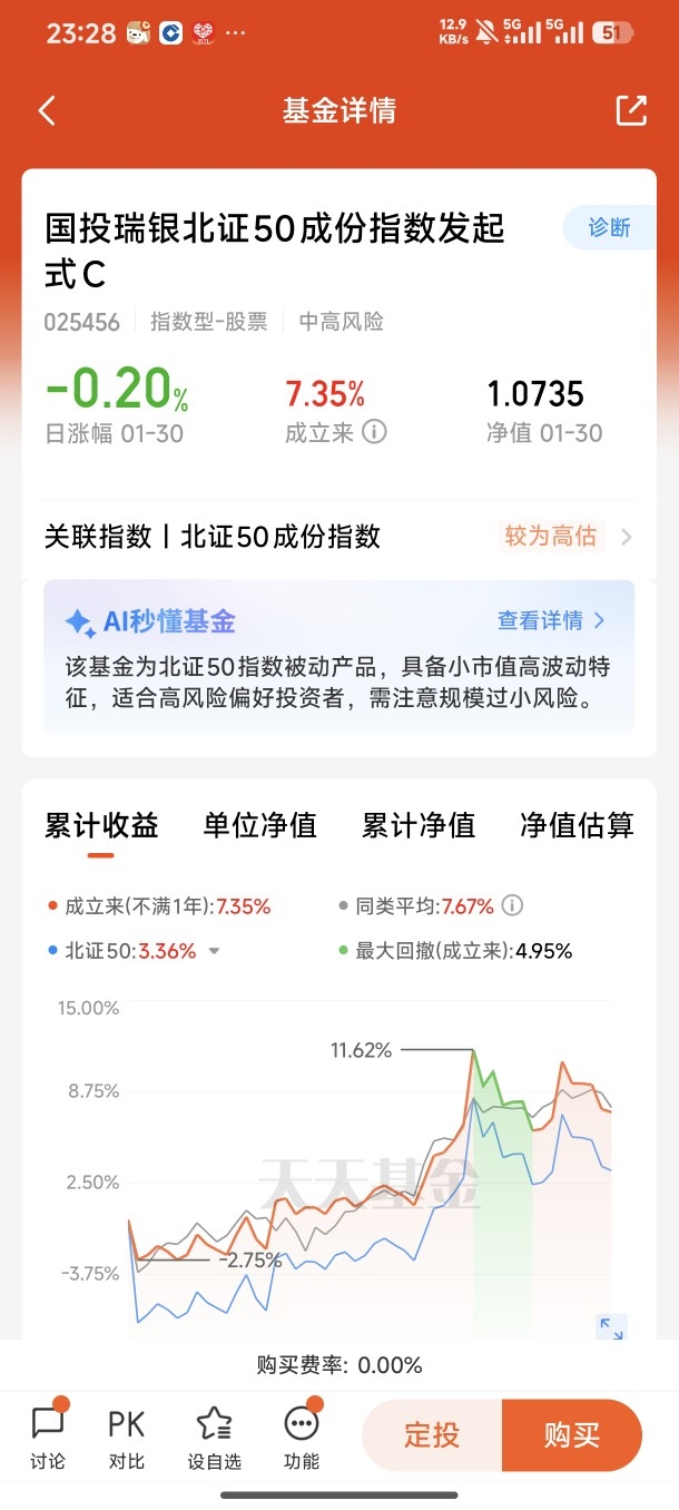 此外,选择一只优质的北证50指数基金,也需要关注基金的发行方、费率结构和跟踪精度。国投瑞银作为老牌公募基金,具备专业的指数投资管理能力,能更好地跟踪北证50指数走势,控制跟踪误差;而指数基金的C类份额,0申购费且持有满一定期限免赎回费,费率成本更低,更适合普通投资者长期持有。