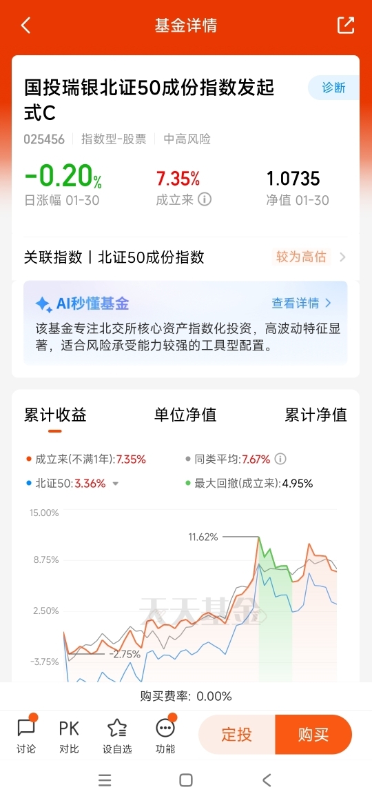 展望后市,伴随AI技术突破和人形机器人产业发展,有望提供高弹性成长,或可将其作为中长期配置。另外,北证50指数与沪深主板指数的相关性较低,可作为传统资产的补充,搭配价值蓝筹或债券类资产进行平衡,提升资产组合的多样性。目前,北交所交投活跃度保持在较高水平,市场关注度保持高位,随着新股发行稳步推进,这片孕育创新型中小企业的沃土,正迎来前所未有的发展机遇。当下适度配置北证50指数,或将成为未来几年投资布局中的一枚重要“棋子”。对于普通投资者而言,北交所投资门槛较高(50万),而通过指数化投资则解决了这一痛点,也是普通投资者参与北交所市场的重要方式。$国投瑞银北证50成份指数发起式C$ 不仅让普通投资者一键布局北交所“专精特新”龙头成为现实,更是掘金“小巨人”企业的便利化工具。@国投瑞银基金